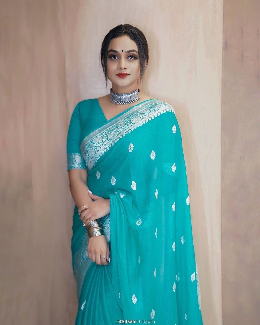 New Arrival Sky Blue Banarasi Silk Saree
