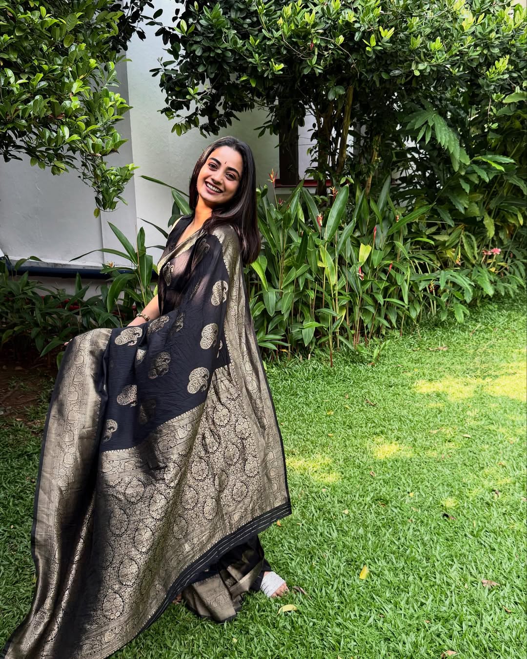 Party Wear Black Soft Banarasi Silk Saree With Blouse Piece